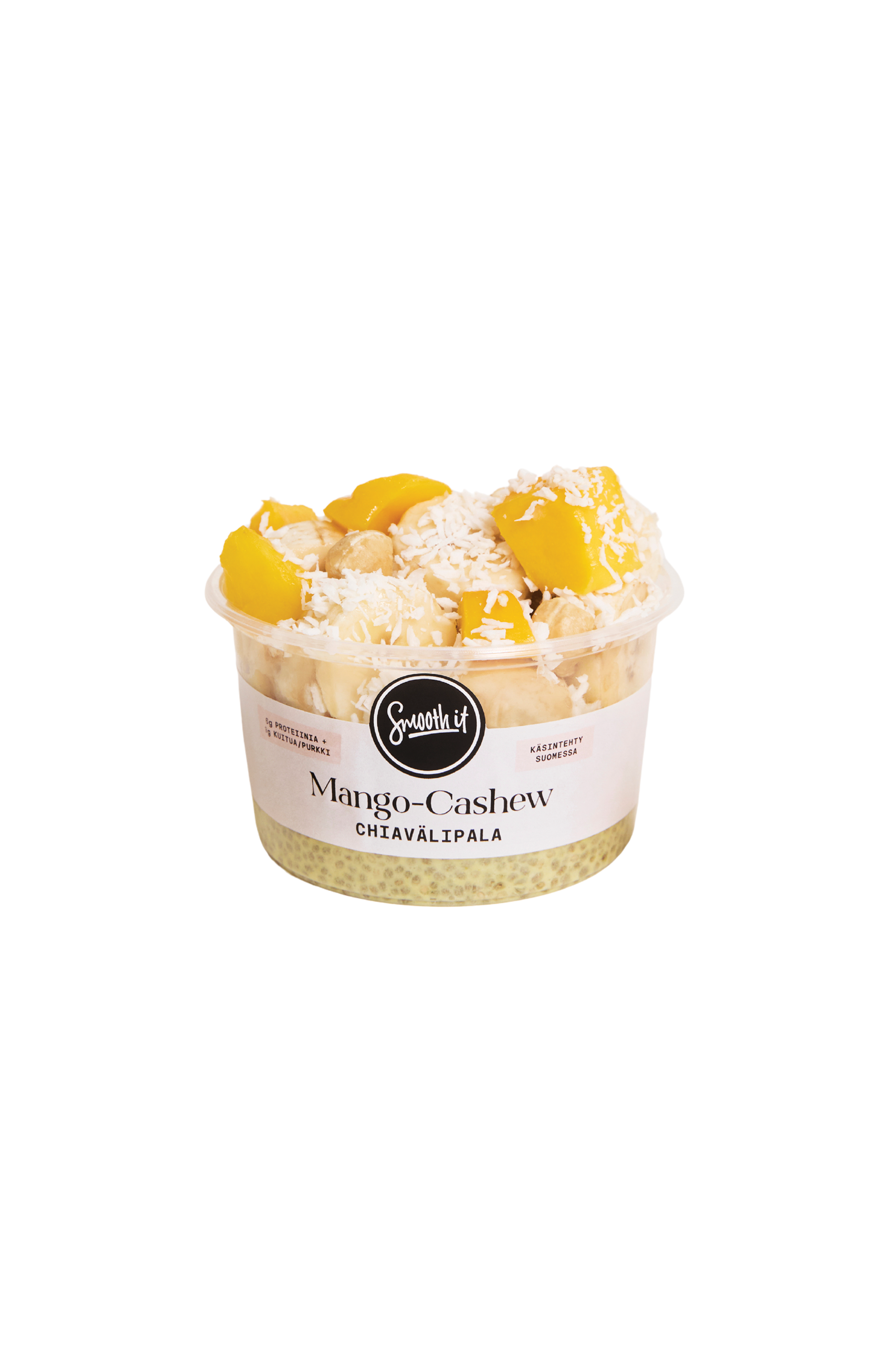 Riisijuoma(vesi, riisi, auringonkukkaöljy), banaani, kookosmaito, mango(7,8%), chiansiemenet(Salvia hispanica), cashewpähkinä (1,1%), kookoshiutale, kurkumajauhe