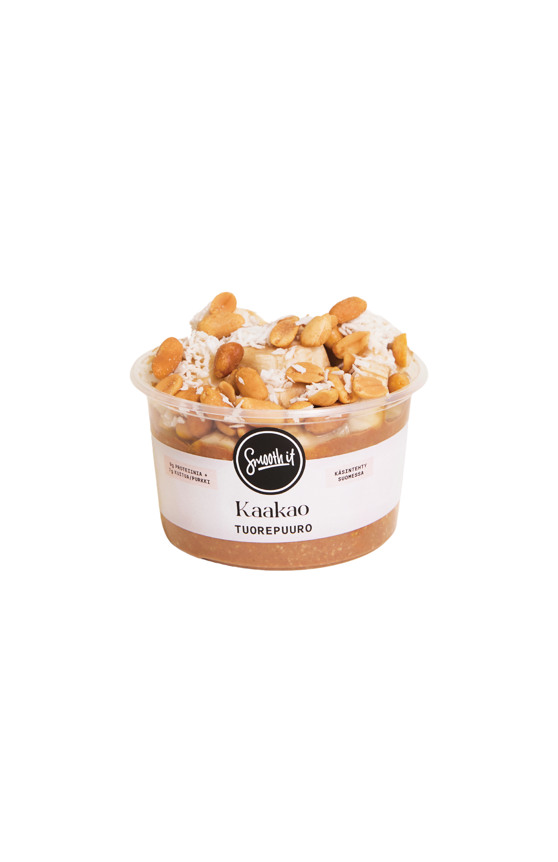 Ainesosat: Banaani, Oatly Täyteläinen KAURAjuoma (vesi, KAURA, rypsiöljy), KAURAhiutale, maaPÄHKINÄ, agavesiirappi, kookoshiutale, raakakaakaojauhe (0,63%)